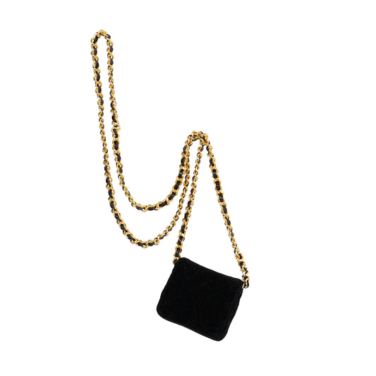 Chanel 1987 Classic Flap Micro Mini Velvet Handbag Necklace